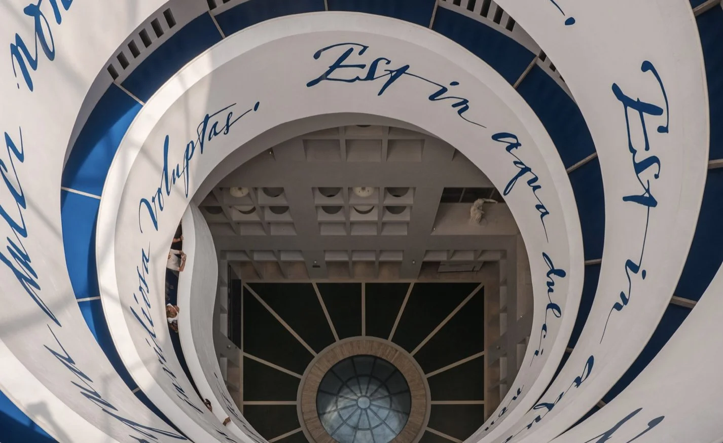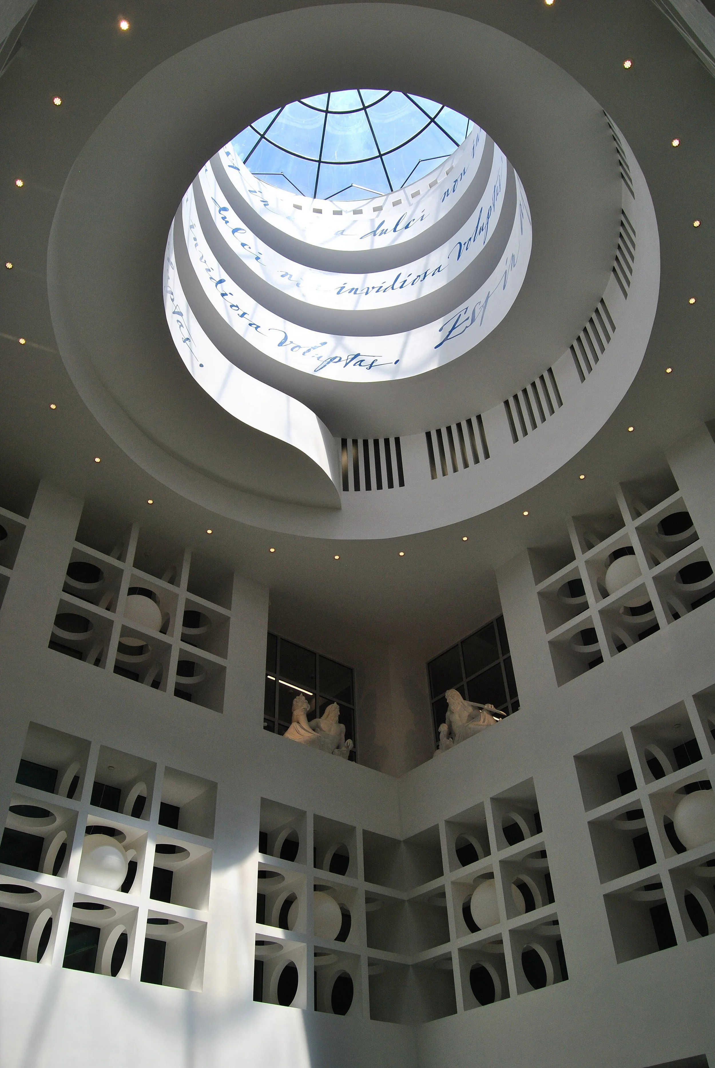 The walls and corridors become a passage through myth: